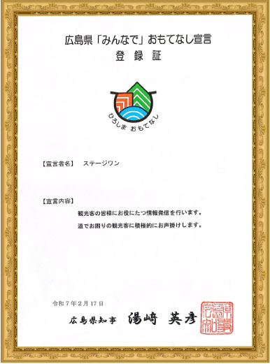 広島県おもてなし宣言の登録店です。