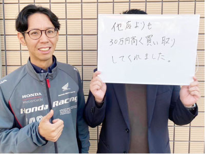 日々、お客様から高くバイクが売れて嬉しいと喜びの声を頂いています。